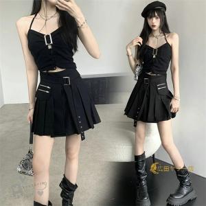 レディース k-popダンス衣装 セットアップ 大人ヒップホップ 韓国 黒 キャミソール ベストスカート ステージ衣装 チアガール 衣装 上下 へそ出し イベント 応