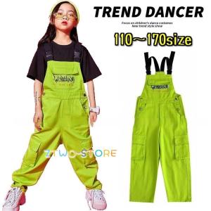 オーバーオール キッズダンス衣装 派手 つなぎ K-POP 韓国 サロペット 黄緑