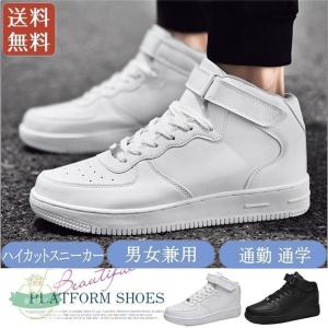 スニーカー メンズ レディース カップル 男女兼用 ハイカット ランニングシューズ ストラップ カジュアル 厚底 安い 白 黒 シューズ 通勤 通学