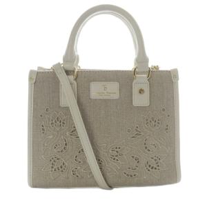 サマンサタバサプチチョイス Samantha Thavasa Petit Choice レース刺繍 ミニバッグ ショルダーバッグ ハンドバッグ 2way ロゴ ベージュ /S