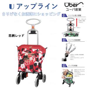 ショッピングカート おしゃれ 4輪 軽量 アップライン 花柄レッド 保温・保冷仕様バッグ 高さ角度調整 プレゼント 母の日 敬老の日 UL-0218 ユーバ産業