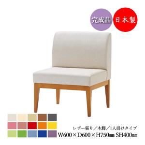 ロビーチェア ベンチ ソファ チェア 幅60cm 1人掛け 1人用 背付き 肘無し 木脚 ブナ材 張地選択可能 ビニールレザー張り MZ-0788