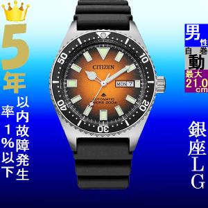 腕時計 メンズ シチズン オートマチック ケース幅40mm プロマスター ポリウレタンベルト シルバー/オレンジ色 CITIZEN 141QNY012001Z
