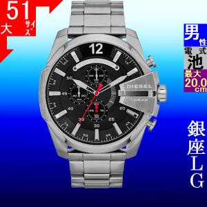 腕時計 メンズ ディーゼル クォーツ ケース幅45mm メガチーフ クロノグラフ ステンレスベルト シルバー/ブラック色 DIESEL 15QDZ4308