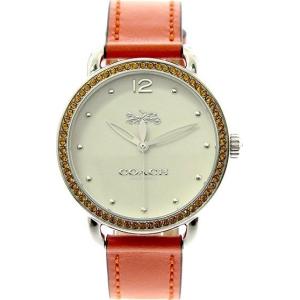 腕時計 レディース コーチ クォーツ ケース幅35mm デランシー 革ベルト シルバー/ホワイト/オレンジ色 COACH 1C8814502880