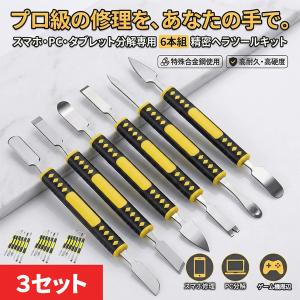 3個セット スマホ分解修理ツール 1セット6本組 精密ヘラツールキット 金属製オープニングツール 滑り止めグリップ採用 iPhone Andro