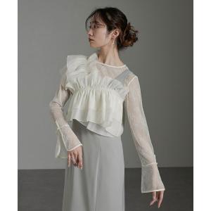 ドレス 「Callarus」ベルスリーブ花柄チュールトップス