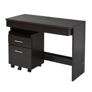 デスク シンプルデスク 2点セット すっきり 配線 収納 ワゴン ハイタイプ 幅100 シンプル SOHO ワークデスク ダークブラウン 代引不可