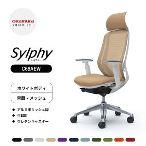 オカムラ シルフィー C68AEW メッシュタイプ EXハイバック 固定ヘッドレスト 可動肘 ホワイトボディ ポリッシュ脚 前傾機能付 ウレタンキャスター