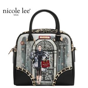 数量限定 NICOLE LEE ニコールリー PRT15134 レディース スクエアハンドバッグ ショルダー ビーガンレザー ミニボストン アンティーク アートプリント