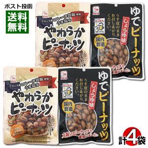 カモ井 ゆでピーナッツ しょうゆ味 80g&やわらかピーナッツ うま塩味 60g 各2袋詰め合わせセット おつまみ 珍味 うす皮 豆 茹でピーナッツ 煮豆 塩味 醤油味