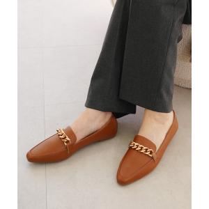 ローファー 軽量ゴールドチェーンアーモンドトゥマニッシュ ローファー レディース