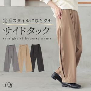 ストレートパンツ レディース ボトムス ワイドパンツ ロング丈 サイドタックパンツ ウエストゴム ポケット 「メール便不可」「30」