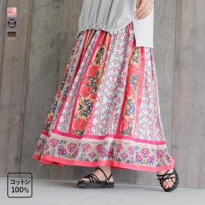マキシスカート レディース ボトムス ロングスカート コットン100% 綿100% 花柄 総柄 春 夏 オシャレウォーカー「メール便不可」「20」