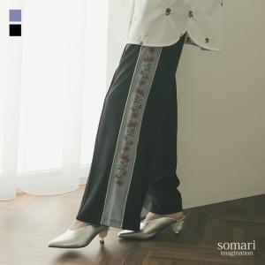 パンツ レディース ボトムス ロングパンツ ワイドパンツ ジャージ 花柄 刺繍 送料無料 オシャレウォーカー 「メール便不可」「20」