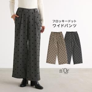 ワイドパンツ レディース ボトムス ロング丈 ストレートパンツ フロッキープリント ドット柄 水玉 ウエストゴム 「メール便不可」「20」