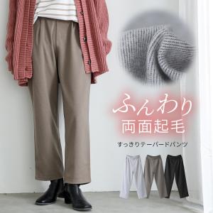 パンツ ロング丈 レディース ボトムス テーパードパンツ すっきり見え ワイド 起毛 ウールライク 伸縮性 ウエストゴム ポケット 秋 冬「メール便不可」「20」