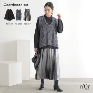 3点コーデセット 2026 レディース ニットベスト ノースリーブ トップス シャツ ブラウス ロングスカート プリーツスカート 「送料無料」「メール便不可」「55」