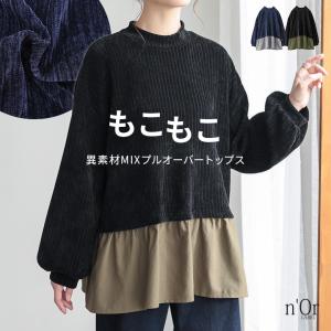 カットソー 長袖 レディース トップス モールカットソー コーデュロイ風 もこもこ シャツ生地 異素材 レイヤード風 プルオーバー 秋 冬「メール便不可」「30」