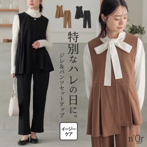 セットアップ レディース トップス ボトムス 2点セット ジレ テーパードパンツ ロング ストレッチ オケージョン オールシーズン「メール便不可」「30」