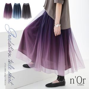 チュールスカート レディース ロング フレア ギャザー 裏地付き 透け感 シアー グラデーション プリント シャーリング 「メール便可」「10」
