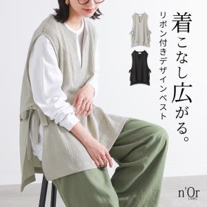 ベスト レディース トップス ノースリーブ キーネック レイヤード 重ね着 リボン 前後差 こなれ感 抜け感 ロングシーズン 無地 ポコポコ「メール便可」「10」
