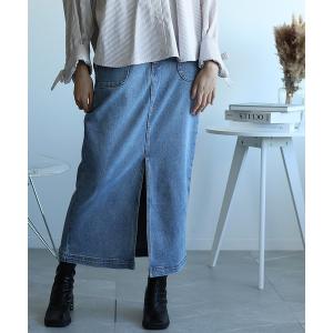 デニムスカート 「aimoha」オリジナル ストレットデニムハイウエストロングスカート(タイトスカート)