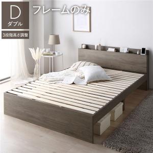 ベッド ダブル ベッドフレームのみ グレージュ 高さ調整可 宮付 すのこ