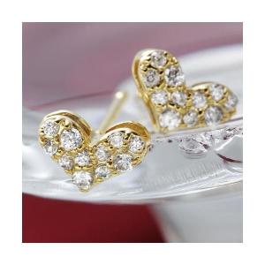 K18YGダイヤモンドピアス ハートパヴェピアス