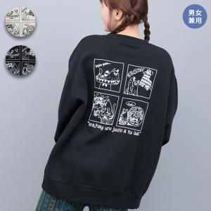 おばけネコ裏起毛プルオーバー / トレーナー 裏起毛スウェット トップス プルオーバー バックプリント ネコ 猫 コミック風 刺繍 男女兼用