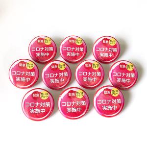 コロナ対策バッジ【コロナ対策実施中】レッド【10個セット】