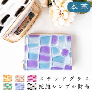本革 財布 レディース 蛇腹シンプル 女性 サイフ ウォレット 革 レザー 革財布 シンプル 人気 おしゃれ ステンドグラス