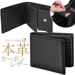 二つ折り財布 メンズ 本革 カーボンレザー スキミング防止 ボックス型小銭入れ コインケース 二つ折りサイフ カードケース 2つ折り財布 メンズ財布 大容量
