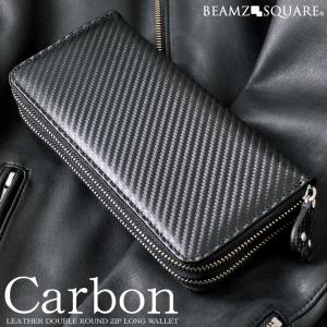 牛革 カーボンレザーダブルファスナー 大容量 長財布 メンズ ウォレット 本革 レザー 財布 紳士 BEAMZSQUARE 収納 おしゃれ ロングウォレット サイフ ギフト