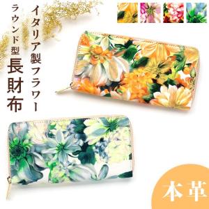本革 長財布 イタリア製 フラワー 花柄 花 財布 レディース 長サイフ カード収納 ラウンドファスナー ラウンド長財布 ラウンド財布 サイフ ウォレット 革 レザー