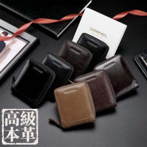 本革 財布 二つ折り メンズ ブランド 革 レザー 牛革 サイフ 小銭入れ 本皮 コンパクト 薄い 軽い ファスナー 紳士用 男性 大容量 高級 ウォレット