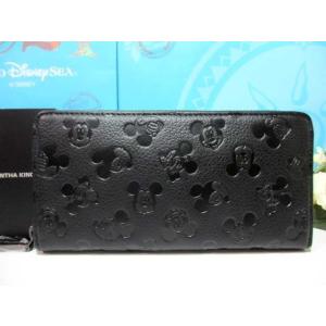 送料無料 キングズ バイ サマンサタバサ 限定 ミッキー 本牛革 型押 ラウンドジップ ファスナー 長財布 黒 新品 証明書付 包装無料 サマンサキングズ ディズニー