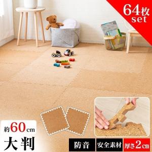 ラグ カーペット ジョイントマット 厚手 大判 60cm 64枚 コルクマット 防音 サイドパーツ付き プレイマット 子供 タイルカーペット マット COJTM-602
