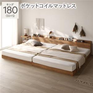 ベッド キング 180 SS+S 3ゾーンポケットコイルマットレス付 シャビーオーク 宮付 連結ベッド すのこベッド