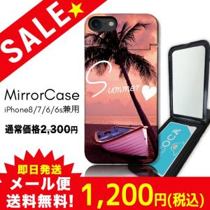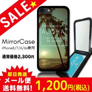 セール iPhone8 ケース 鏡付き iPhone7 ミラー ケース ICカード スマホケース カード収納 ブラック アロハ ハワイ 海 夕日 夏 ハート ヤシの木