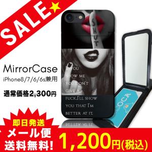 セール iPhone8 ケース 鏡付き iPhone7 ミラー ケース ICカード スマホケース カード収納 セクシー ガール 赤リップ SHUT かっこいい