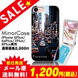 セール iPhone 8Plus 7Plus 6Plus 6sPlus ケース 鏡付き ミラー ケース ICカード スマホケース カード収納 ニューヨーク 風景 メンズ 外国 海外