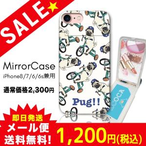 セール iPhone8 ケース 鏡付き iPhone7 ミラー ケース ICカード スマホケース カード収納 PUG パグ 犬 アニマル かわいい