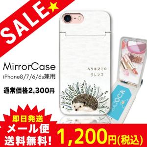 セール iPhone8 ケース 鏡付き iPhone7 ミラー ケース ICカード スマホケース カード収納 ハリネズミ 北欧 アニマル 動物 大人かわいい
