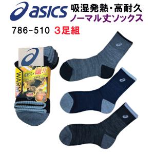 アシックス ソックス asics WAEM吸湿発熱ソックス 3足組 先丸 クルー丈 暖・高耐久 クッションパイル (786-510)