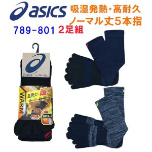 アシックス ソックス asics WAEM吸湿発熱ソックス 2足組 5本指 クルー丈 暖・高耐久 足底サポート(789-801)