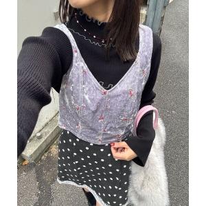 キャミソール ラインストーンフラワー刺繍ビスチェ