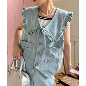 ベスト ジレ 「HELLO.SANFRANCISCO」衿取り外しデニムベスト レディース