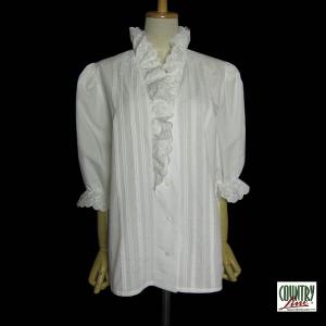 COUNTRY Line フリル チロル ブラウス 白 五分袖位 レディース XL位 ヨーロッパ 古着 クラシカルブラウス