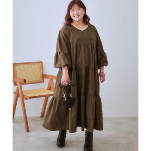 ワンピース 「大きいサイズ」 ゆるシルエットティアードデザインワンピース